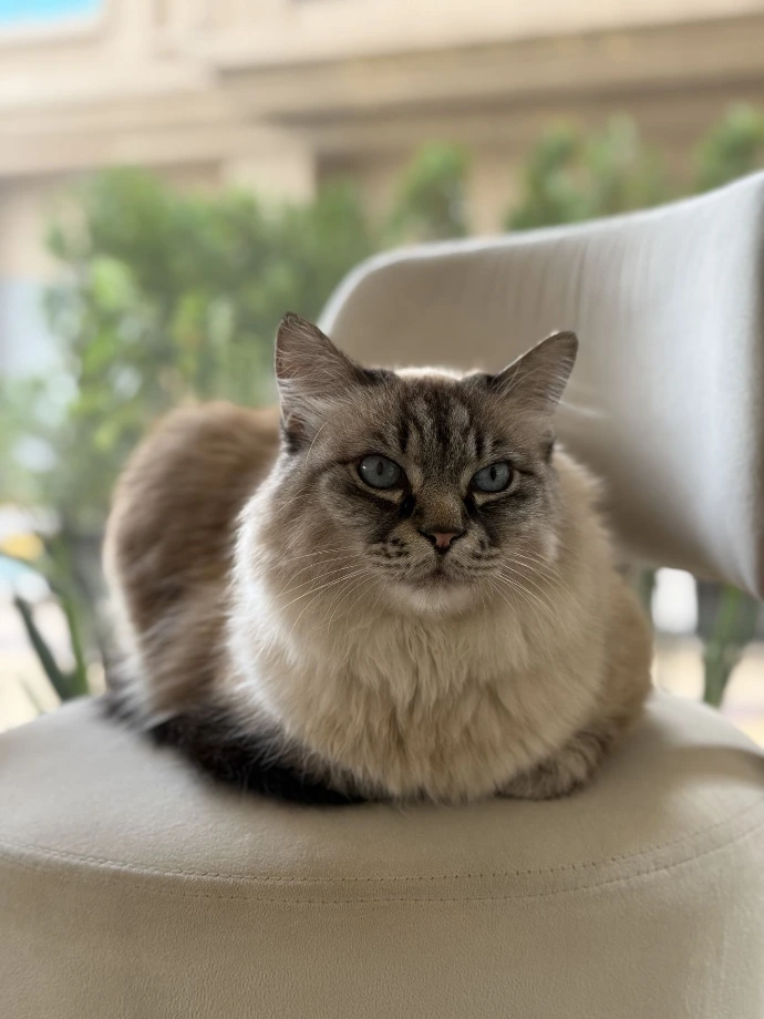 If you see a Ragdoll staring at you from the entrance, it's likely Ivy waiting for you to open the door. Ivy loves guests with warm, comfortable laps who can sit almost motionless for a full hour.