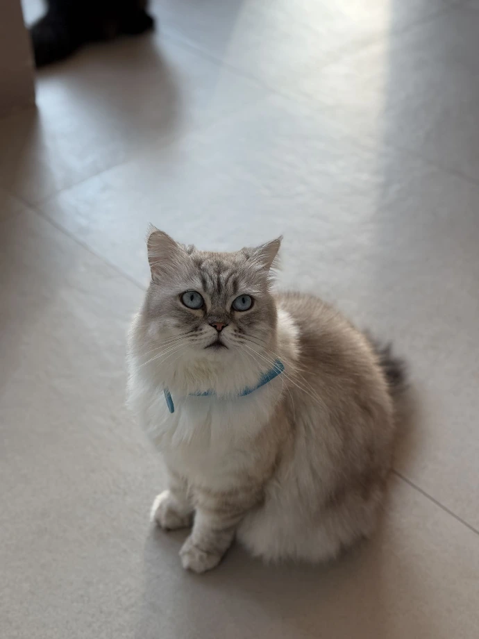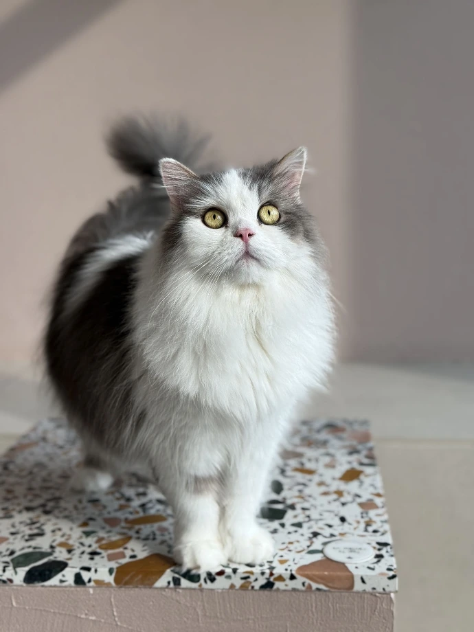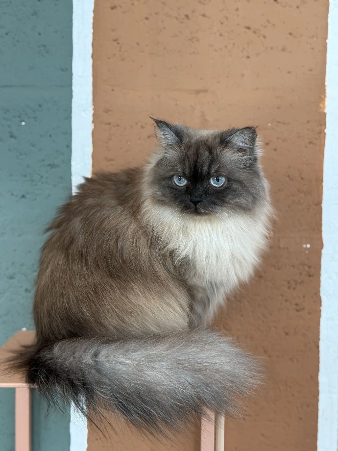 Lofi's mesmerizing blue eyes are known to captivate the staff and guests alike. You can sometimes see Lofi following the staff to politely, yet persistently, demand the attention he deserves.