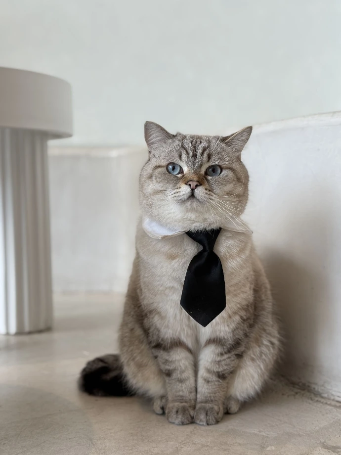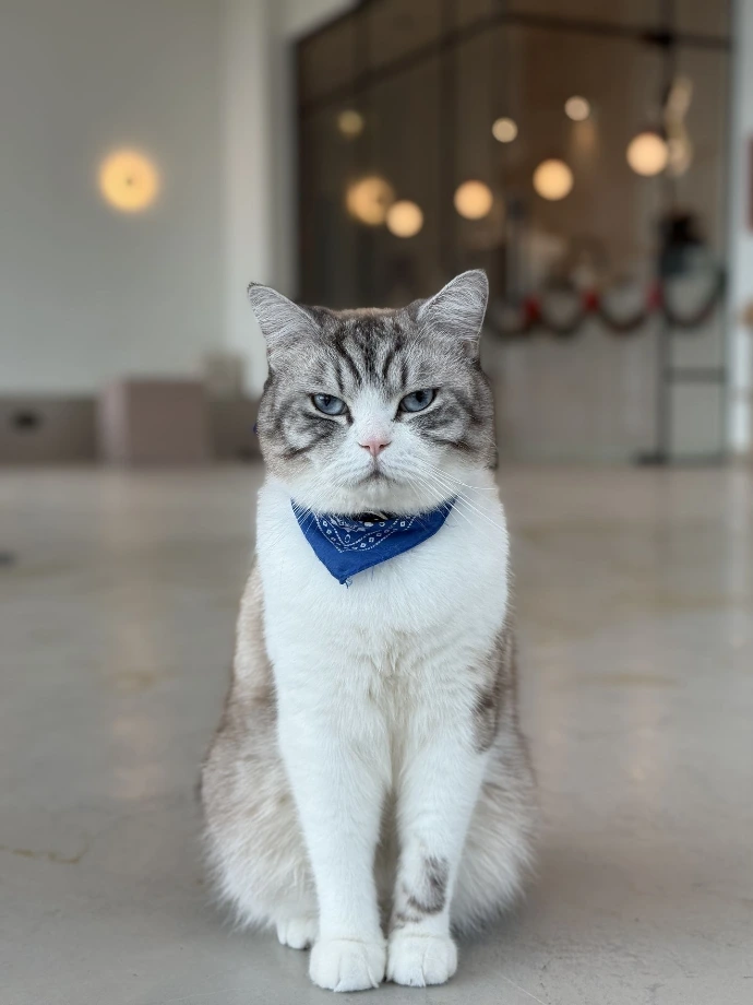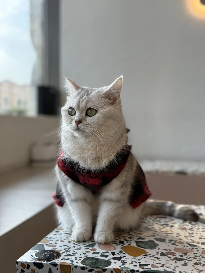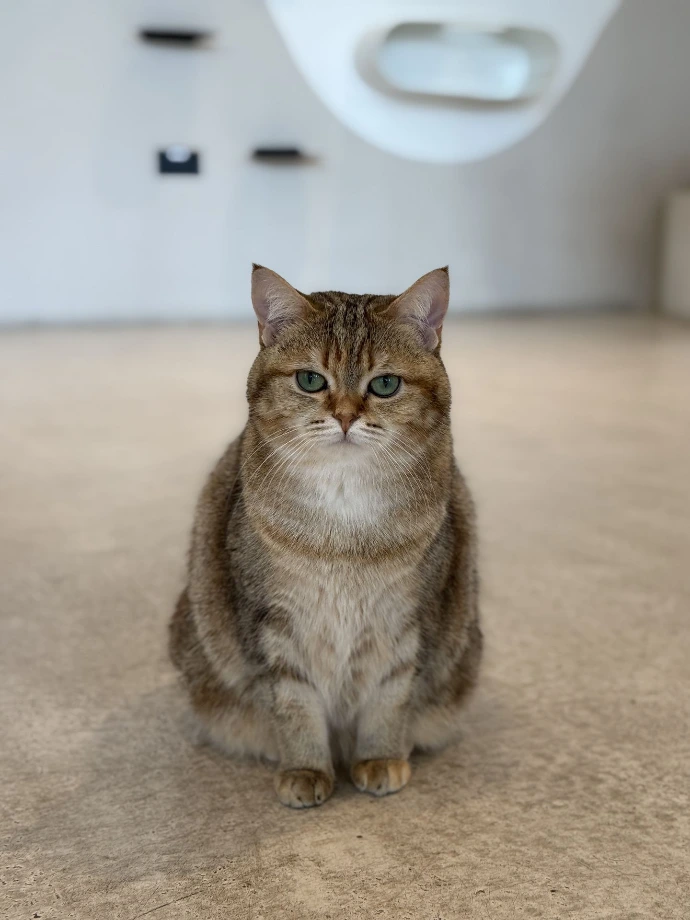 A British Shorthair with a few stripes on his socks, meowing orders at staff while working? That's Kiwi, the staff supervisor. In the first hour after opening, Kiwi ensures staff are working perfectly. Treats? Pets? He's on the case.