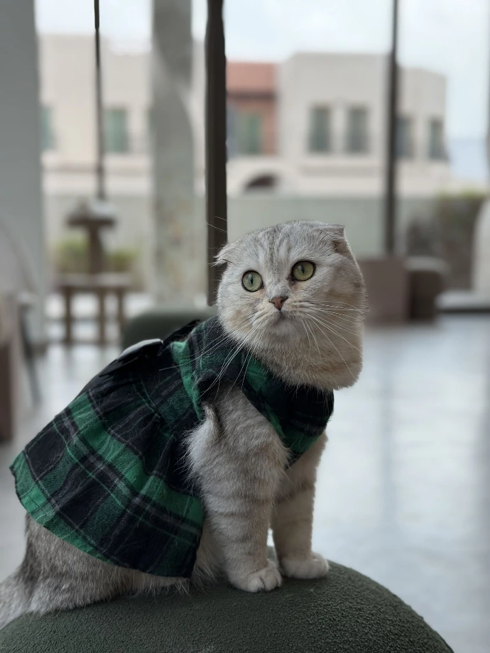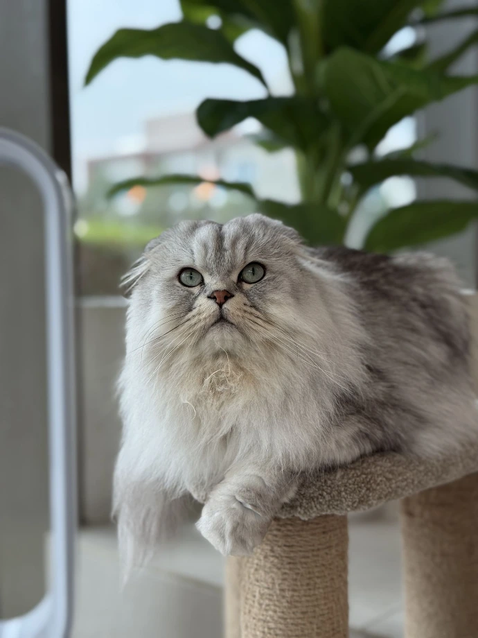 If you spot a silver Scottish Fold by the door, that's Coconut working at his checkpoint. New guests? He'll sit upright to get a better look at you. Treats in hand? Even better.