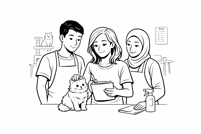 Today, after caring for 100+ cats and welcoming visitors from all over the world, Rama still shows up like it’s day one.